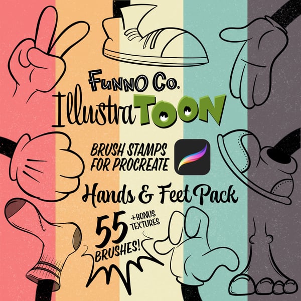 IllustraTOON Cartoon Hands & Feet Pack | Brush Stamps for Procreate | 55+ Brushes