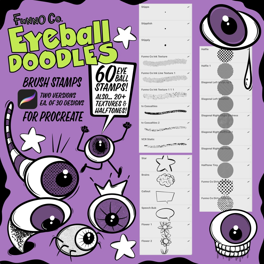 EyeBalls Doodle Pack | Brush Stamps for Procreate | 60 Brushes Plus 20+ Extras!